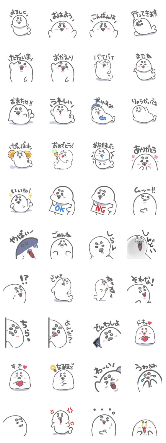 スタンプ説明 ぷにぷにしたあざらしの赤ちゃん