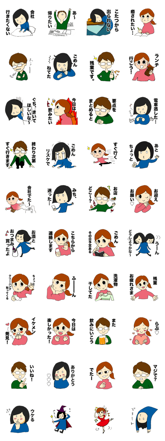 しっかりOLしーちゃんとぐだぐだOLじゅーちゃんと、時々せんぱいのOL日常あるある&つれづれつぶやきスタンプ。