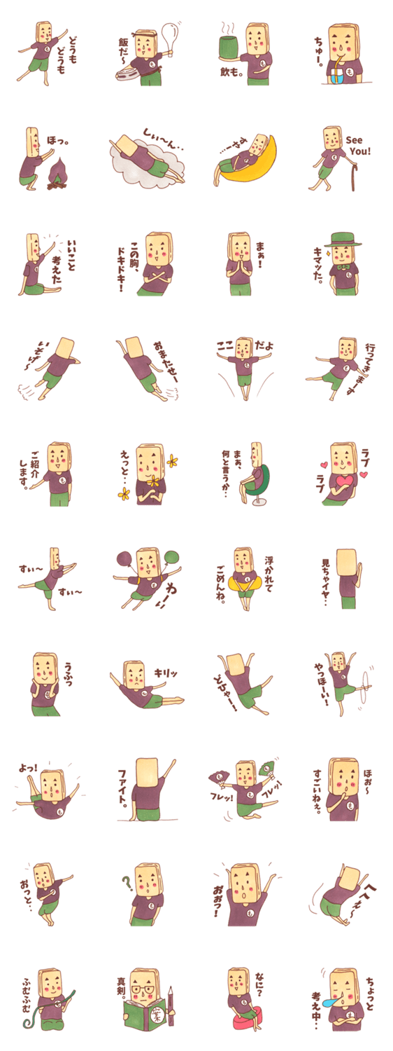 | スタンプ説明 | アイディア紳士の「もなかさん」が、もなかのようなソフトさで、気持ちを表現します。 |