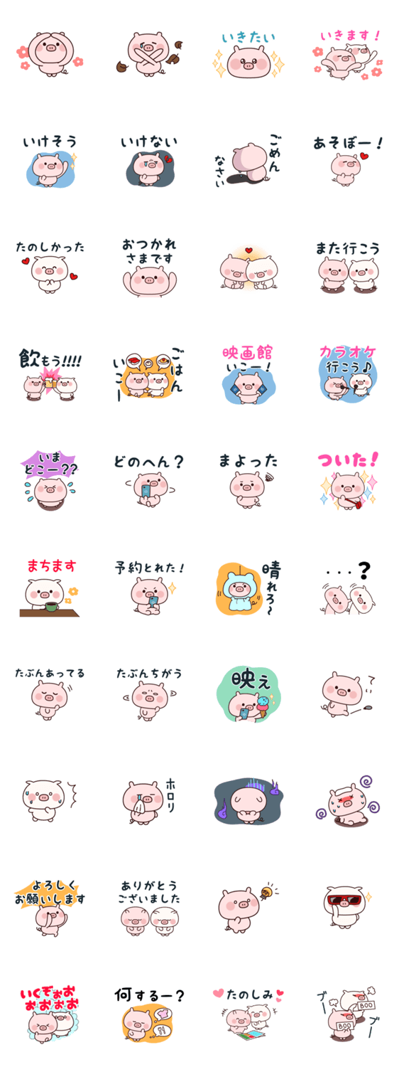 お出かけの誘いや待ち合わせ、お返事やリアクションなどに便利なこぶたのスタンプです!