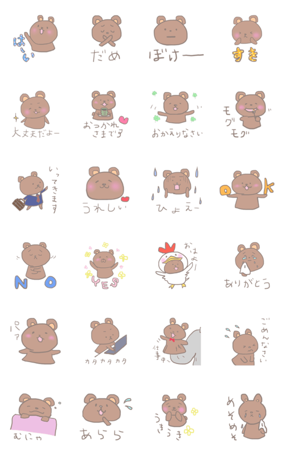 ほっとするくまちゃんスタンプです。日常で使いやすい言葉で作りました。