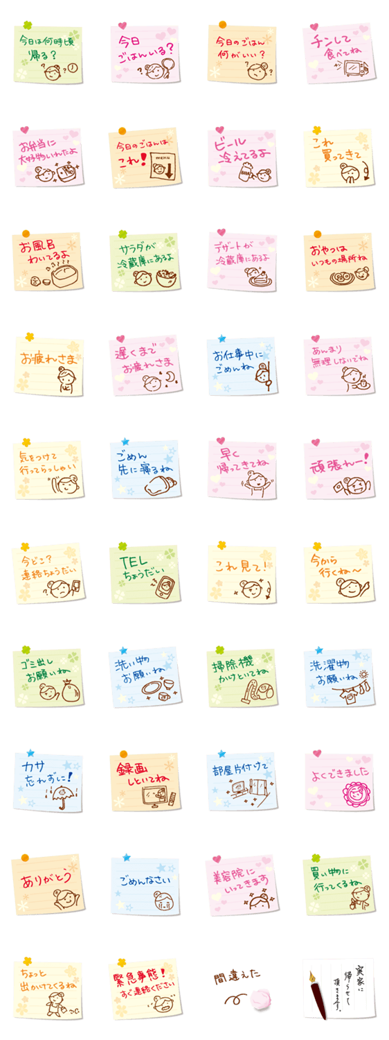 ママから家族へ向けたメッセージスタンプです。パパや子供たちにメッセージを伝えるのに便利!!第二弾のパパ用スタンプもあるよ!