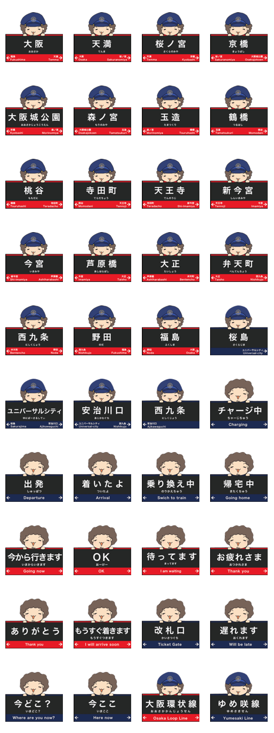 | スタンプ説明 | ぱんちくんが大阪環状線とゆめ咲線の駅名を可愛く紹介しています。 |