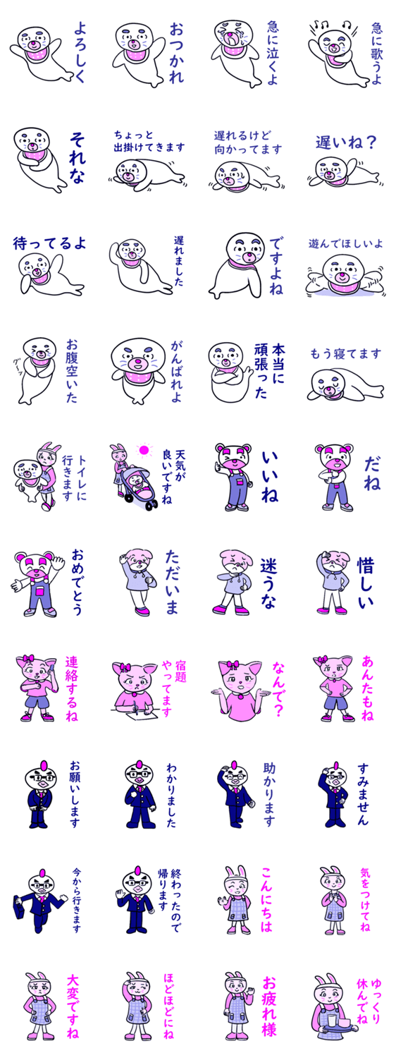 ちょっと妙なアザラシと住人たちのスタンプです。