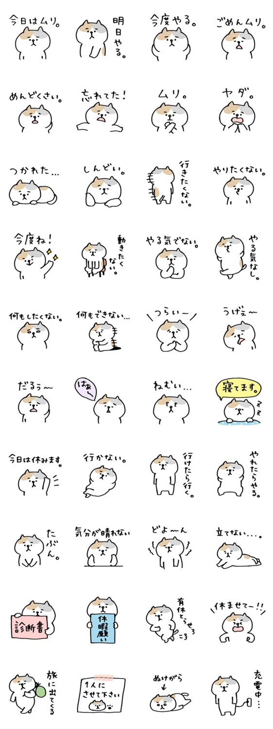 五月病、疲れてる時、病んでる時、月経前症候群(PMS)などなど。どよーんとした気分を代弁してくれるネコです。