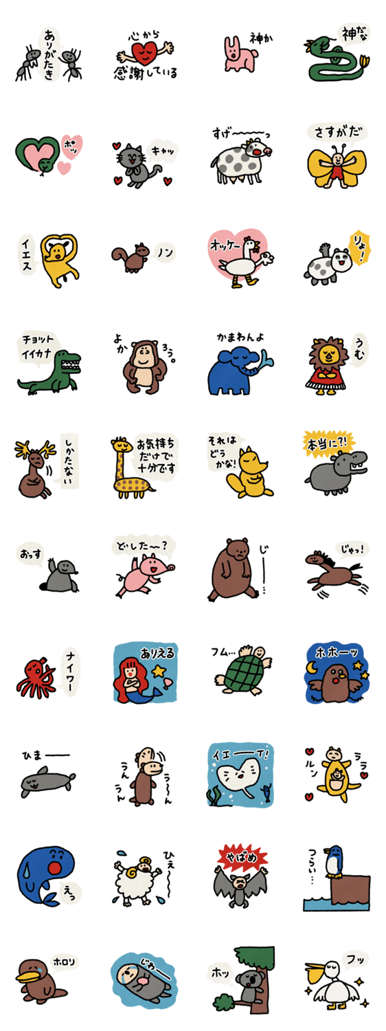 ゆるーくかわいい(?)いきものたちのスタンプです。