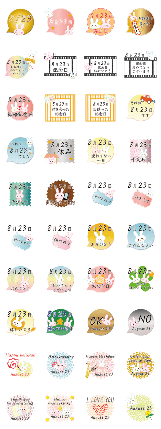 8月23日記念日うさぎ -LINEスタンプマニア