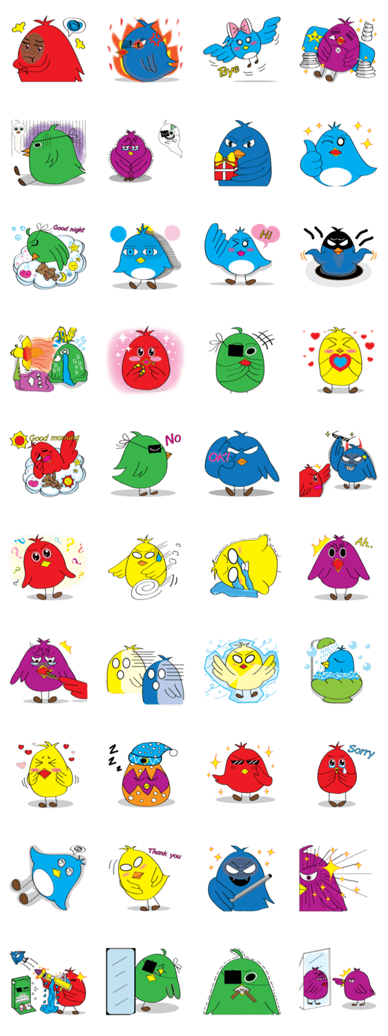 | スタンプ説明 | Six style chicks,six colours.Which are so cute and tease in the same time.Please enjoy and familiar with all of them.They are naughty chicks "Piyoguon" |