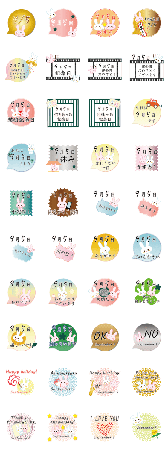 9月5日が記念日や誕生日の方に送るうさぎ。記念日を忘れないために所有。同窓会のご案内や日常に。恋人、夫婦、家族、友達など好きな方に送る好きウサギ応援隊シリーズ。