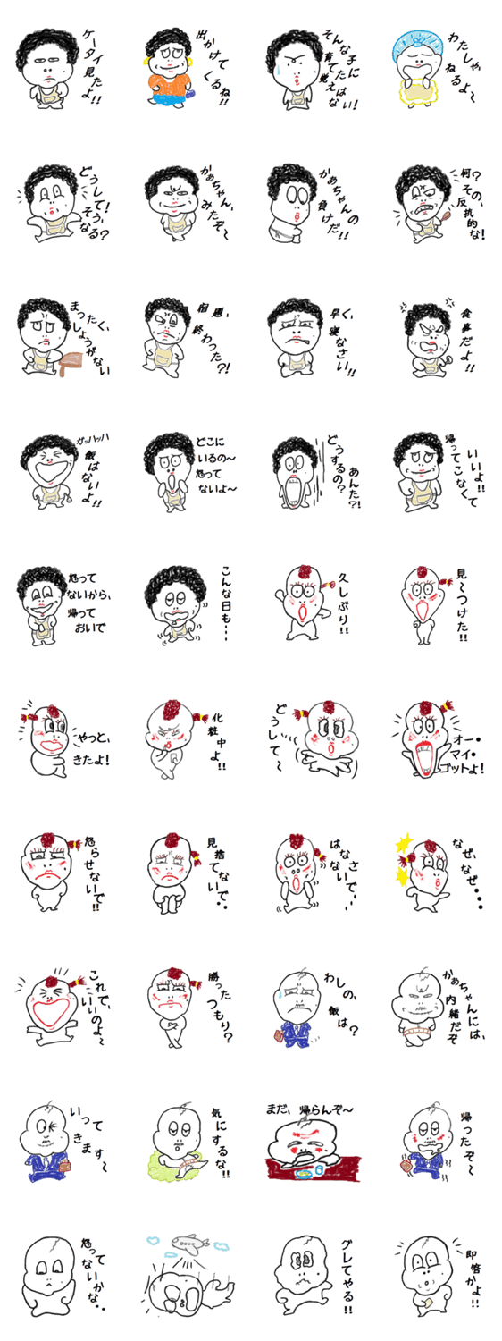 COCOBEの家族が登場する。冗談で笑える様にユーモアで表現された。楽しく面白い、スタンプ。