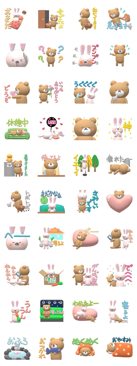 「うさくま日和」2のスタンプです♡3Dバージョン♡日常言葉あつめました。