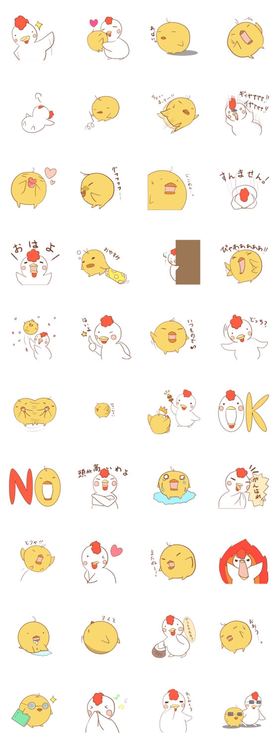 ひよこと鶏の愉快な日常的スタンプです。色々な場面で使ってください!