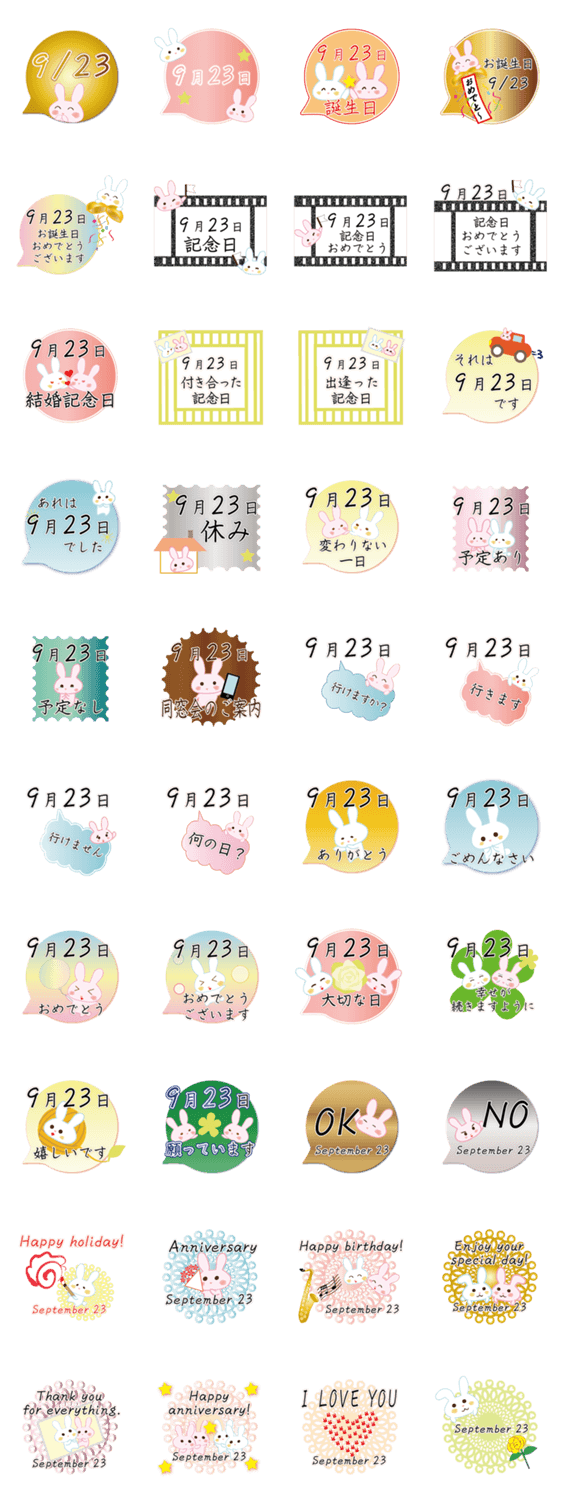 9月23日が記念日や誕生日の方に送るうさぎ。記念日を忘れないために所有。同窓会のご案内や日常に。恋人、夫婦、家族、友達など好きな方に送る好きウサギ応援隊シリーズ。