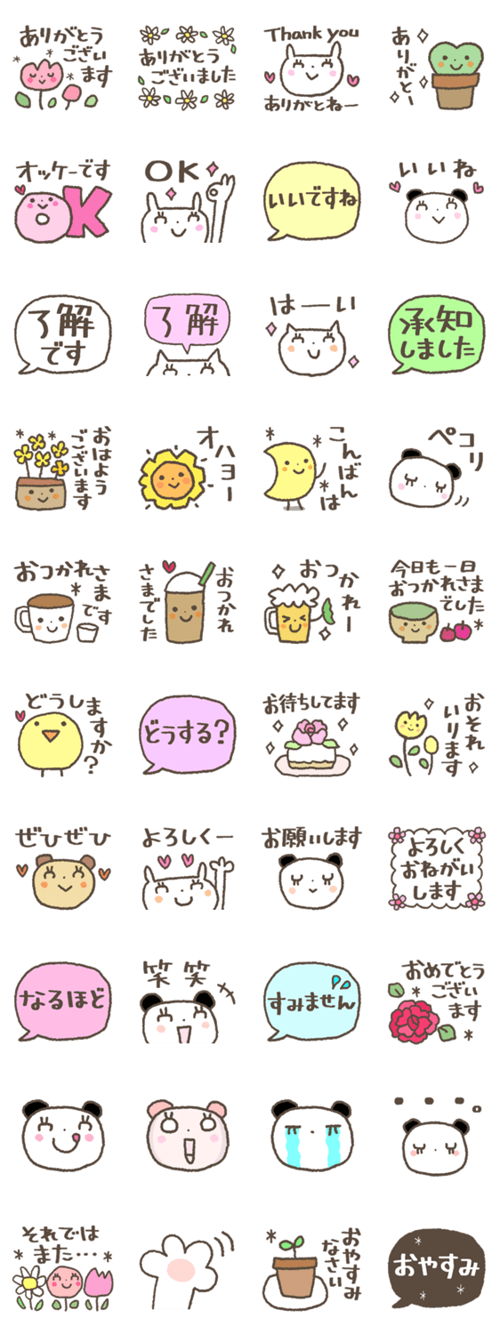 日常会話にかかせない、よく使う言葉40個。あると便利なシンプル、デカ文字です。丁寧語、ふきだし、見やすいスタンプです。