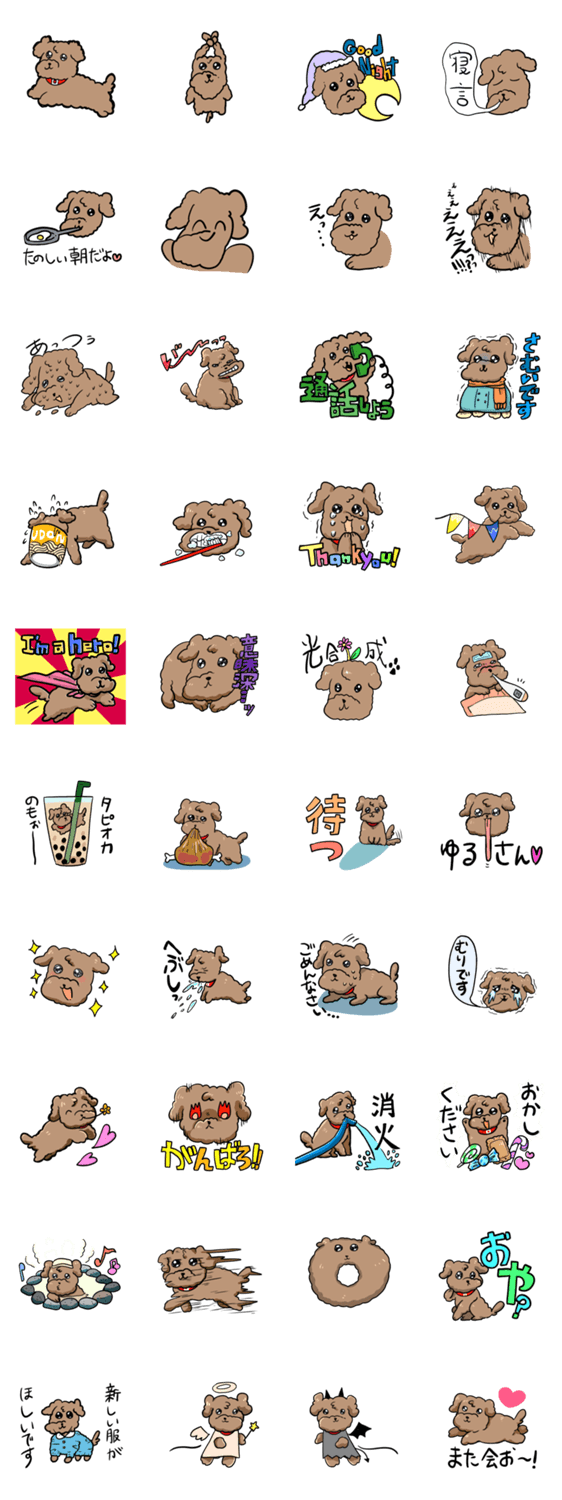 おいぬのチリペッパーくんのスタンプです。かわいい?かっこいい?面白い?……いろんなチリペッパーを詰め込みました。