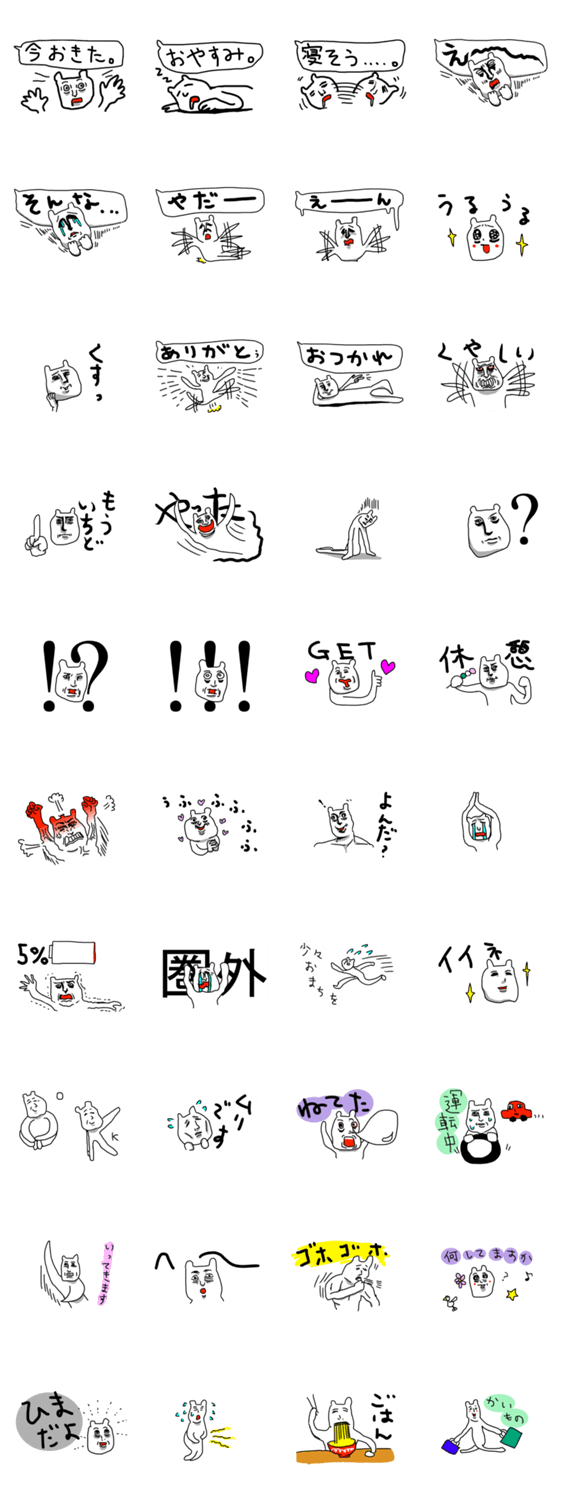 疲れたクマの第二弾です。日常会話で使えるはずです。怒ったり泣いたり寝不足したり・・キモかわいいクマを是非!