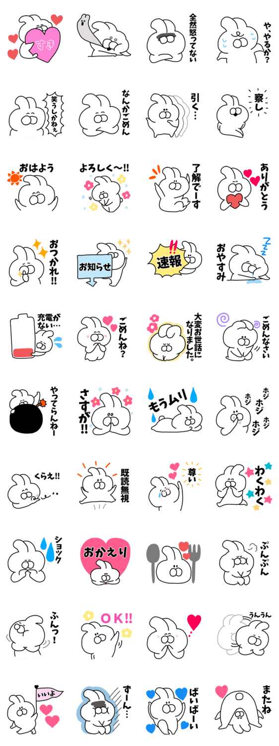 ゆるいうさぎのスタンプです。よく使うフレーズ、言葉をあつめました!