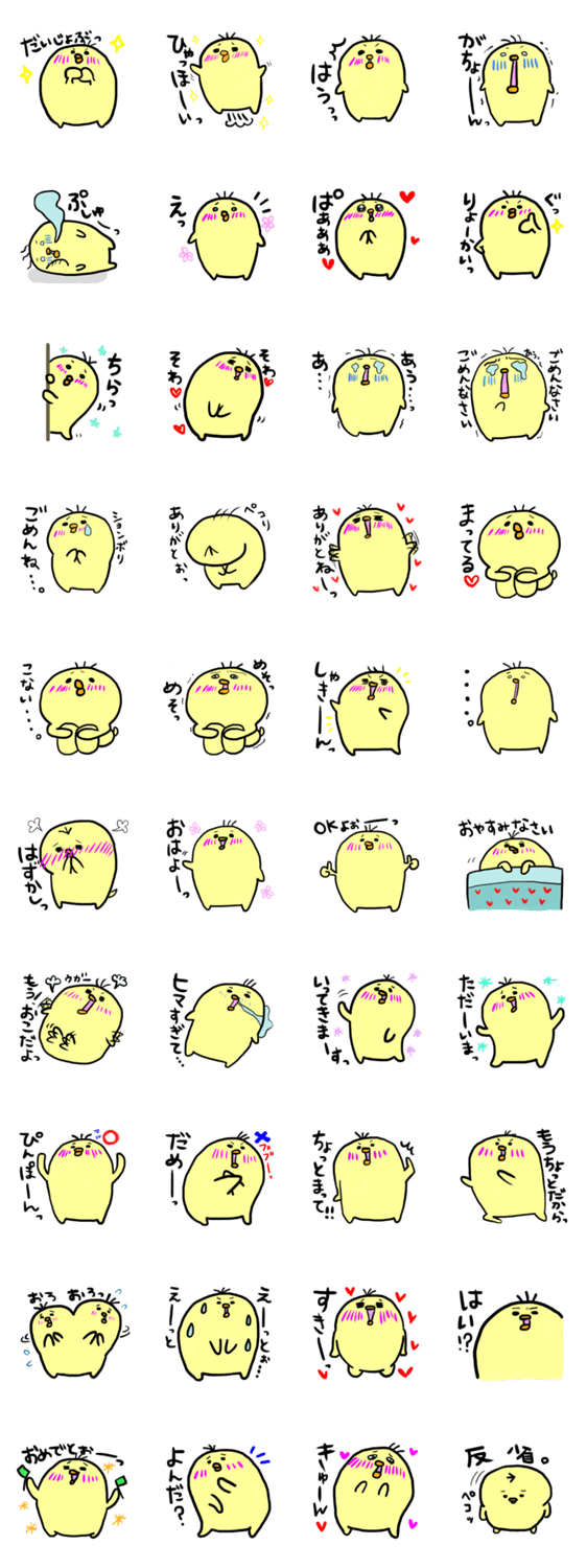 シンプルでゆるーいヒヨコのぴよこさんです。日常のコミュニケーションでお使いください。