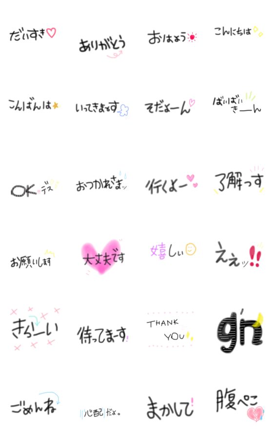 女の子が使えるような黒文字の一言スタンプです