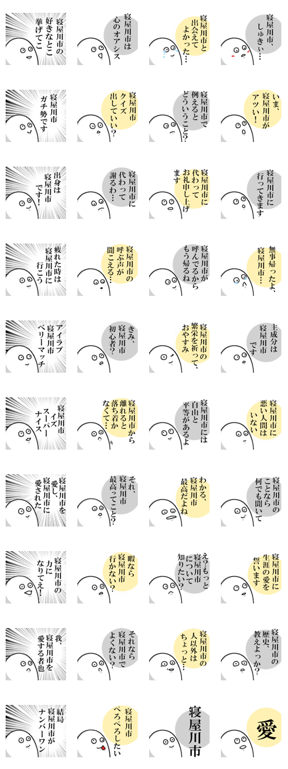 大阪府寝屋川市民もそうでない方も使える、愛に満ちたスタンプです。