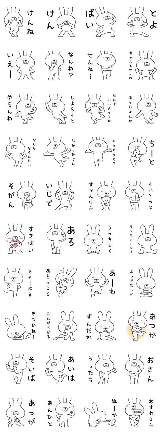 いろんな方言をつかううさぎのスタンプ長崎弁編4(長崎弁ですが、九州地方や、そうでない方も使えるかも。また違う県verに似た方言が見つかるかも)