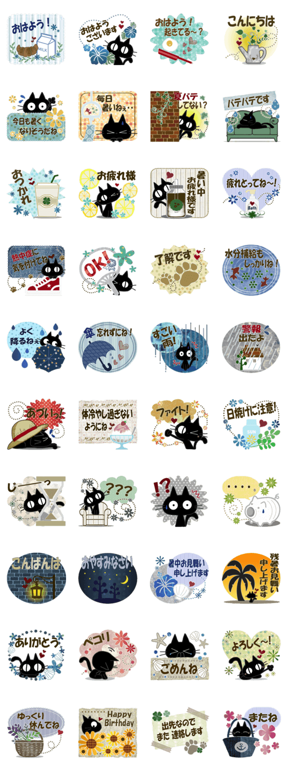 黒ねこシリーズ、夏の日常編です。季節を問わずに使えるものも入ってます❤