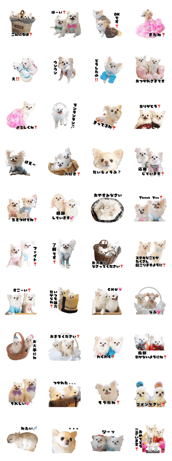 可愛いロングコートチワワ・ミルク&キューピーの日常をhappyにする優しい癒し系スタンプです。