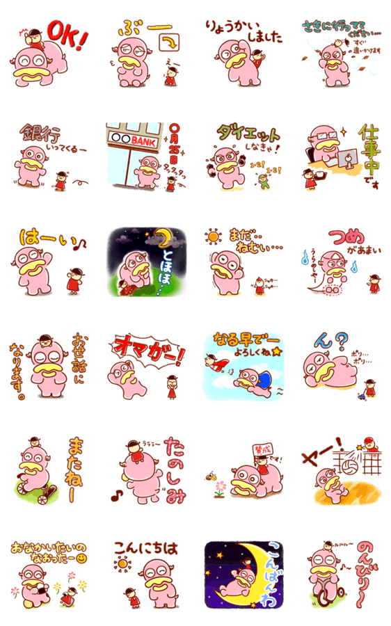 スパゲッティ狂騒曲に暮らす心優しい怪獣と不思議なちからを持つ小人のスタンプ第3弾!友達や家族との会話に使いやすいフレーズに加え、たまに使いたくなる?笑フレーズも♪