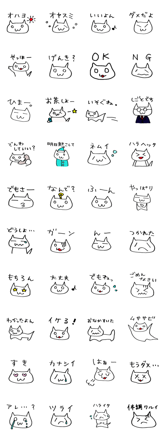 マイペースでおとぼけなネコです。体調が悪いときなどに使えるスタンプも。