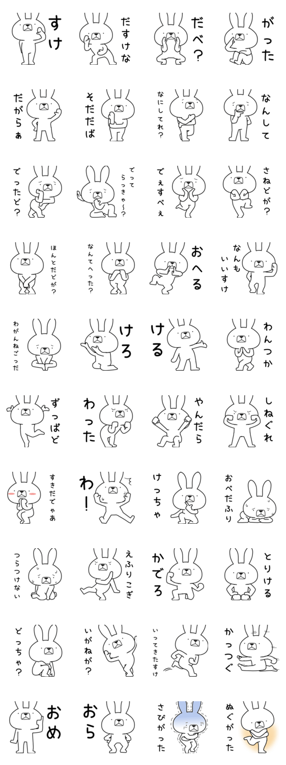 いろんな方言をつかううさぎのスタンプ南部弁編4(南部弁ですが、青森・秋田・岩手・福島・宮城・山形の方、そうでない方も。また違う県verに似た方言が見つかるかも)
