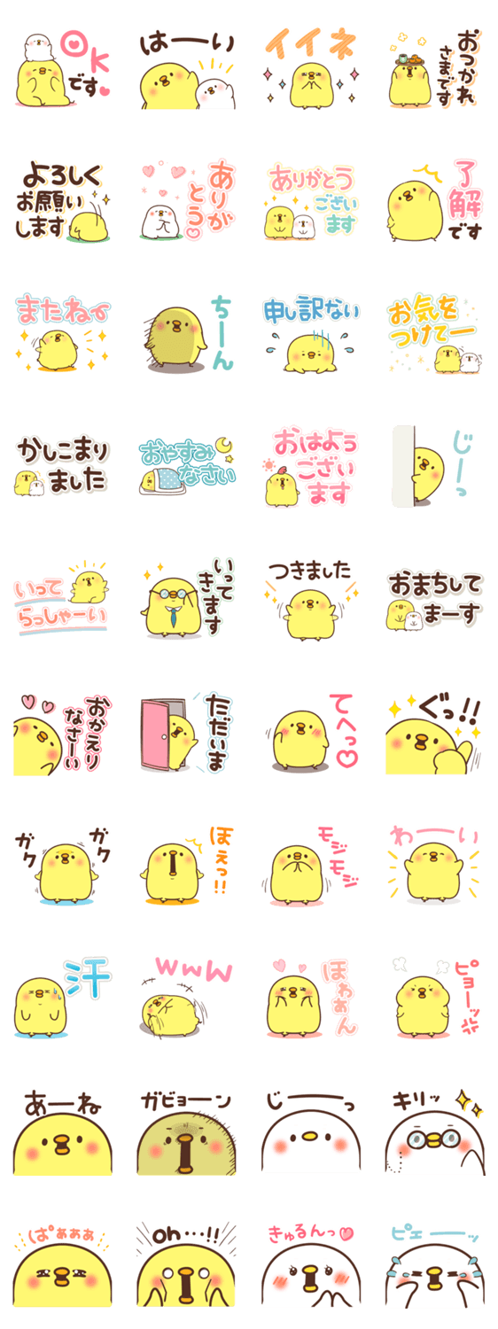 ひよこさんシリーズ番外編!大きな文字や表情のアップなど、見やすいスタンプがメインです♪