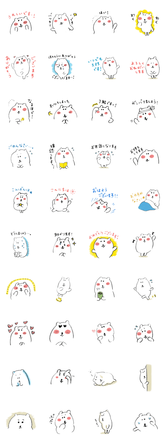 mochiのスタンプ第2弾♪手書きのゆるいしろくまさんが、敬語でお話しします。バイトの先輩や、お仕事仲間との会話にどうぞ☆