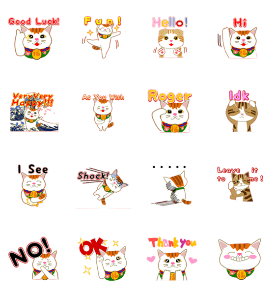 | スタンプ説明 | Fortune Cat is Japanese traditional messenger animal of god. He has funny company, Cute girl Scottish. and Cool Tabby cat. They liven up your conversation ! |