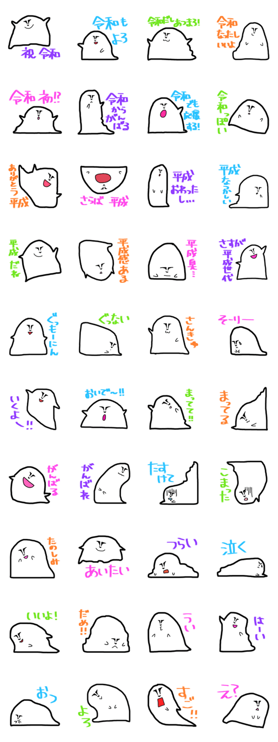 令和・平成の元号スタンプ 基本・日常・返答系の 色んなニュアンス詰め合わせ【変な奴/シュール/キモカワ/顔/人間/イラスト/手描き/】