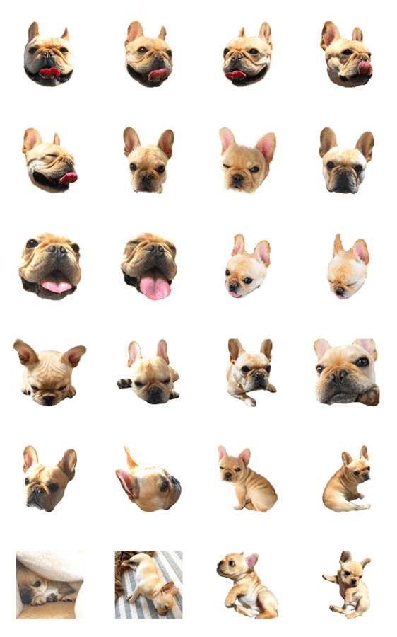 フレンチブルドッグたろのスタンプです。一言を添えて、いろんな使い方をしてみてください。