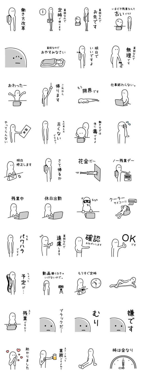 働き方改革★ほそいやつ -LINEスタンプマニア