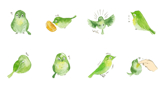 のんびり屋さんのメジロ、ぴちこのスタンプです。 時たま近所の家に上がり込んでは、みかんをもらったりしてるらしいです。