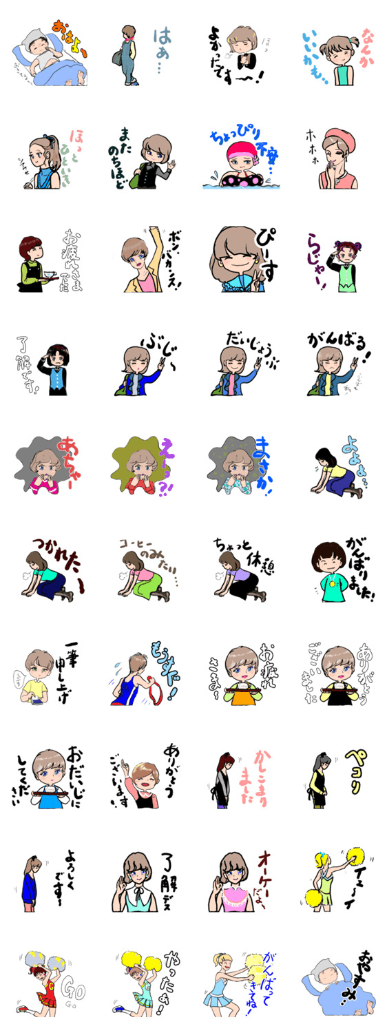バラエティキャラ、ユニークイラストで毎日とっかえひっかえ使えて、しばらく飽きないスタンプ!