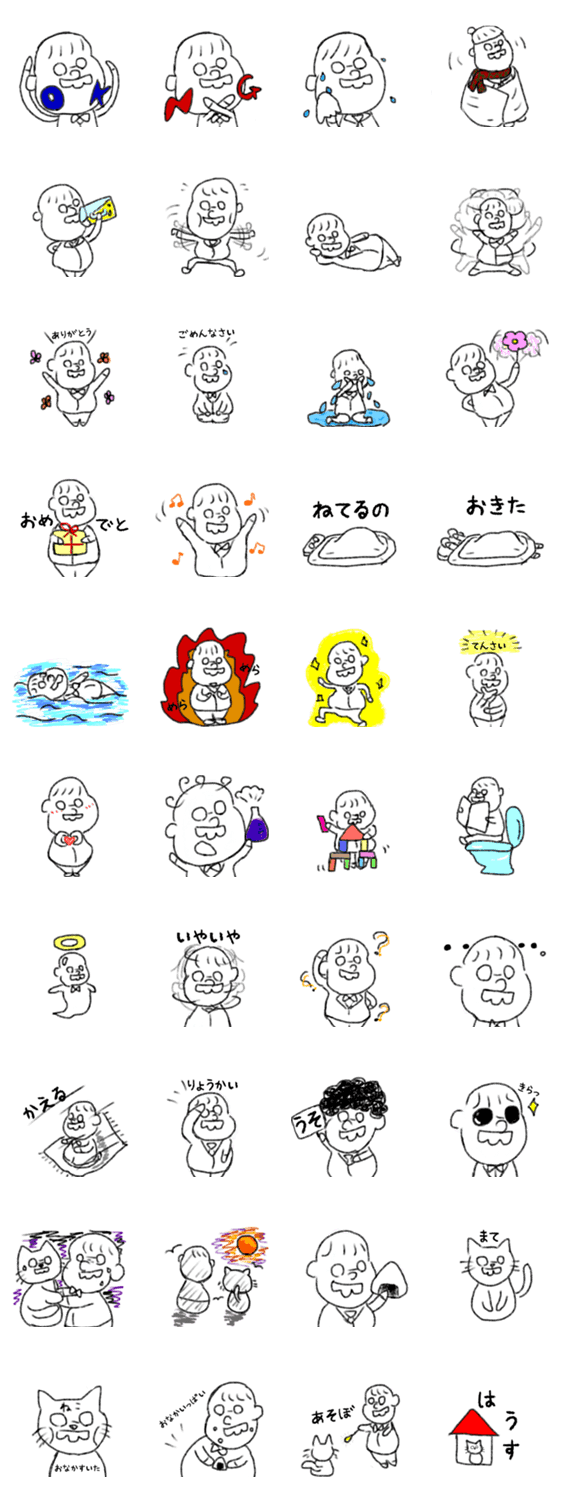 ゆるーいおじさんのスタンプです。 のんびりしたいときに使ってください。