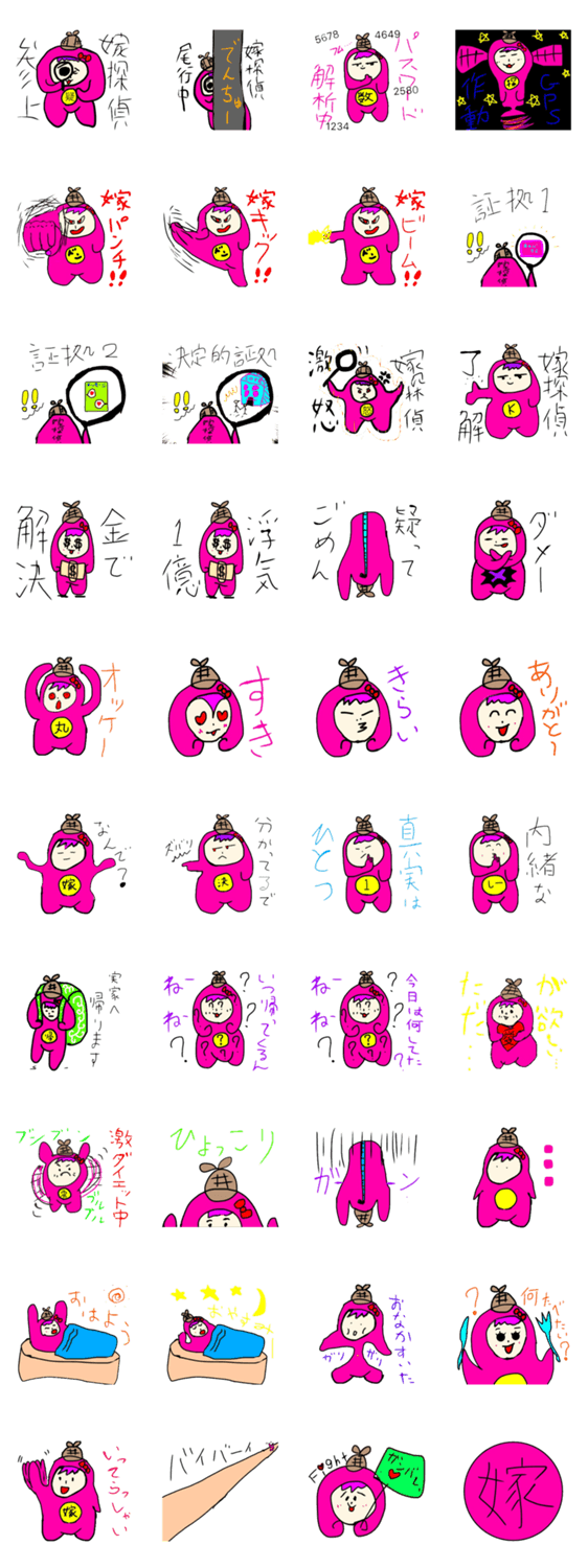 嫁探偵です!最近旦那が怪しいんです!これから調査していきます!おもしろくて使えるスタンプです!funny wife detective good stamp