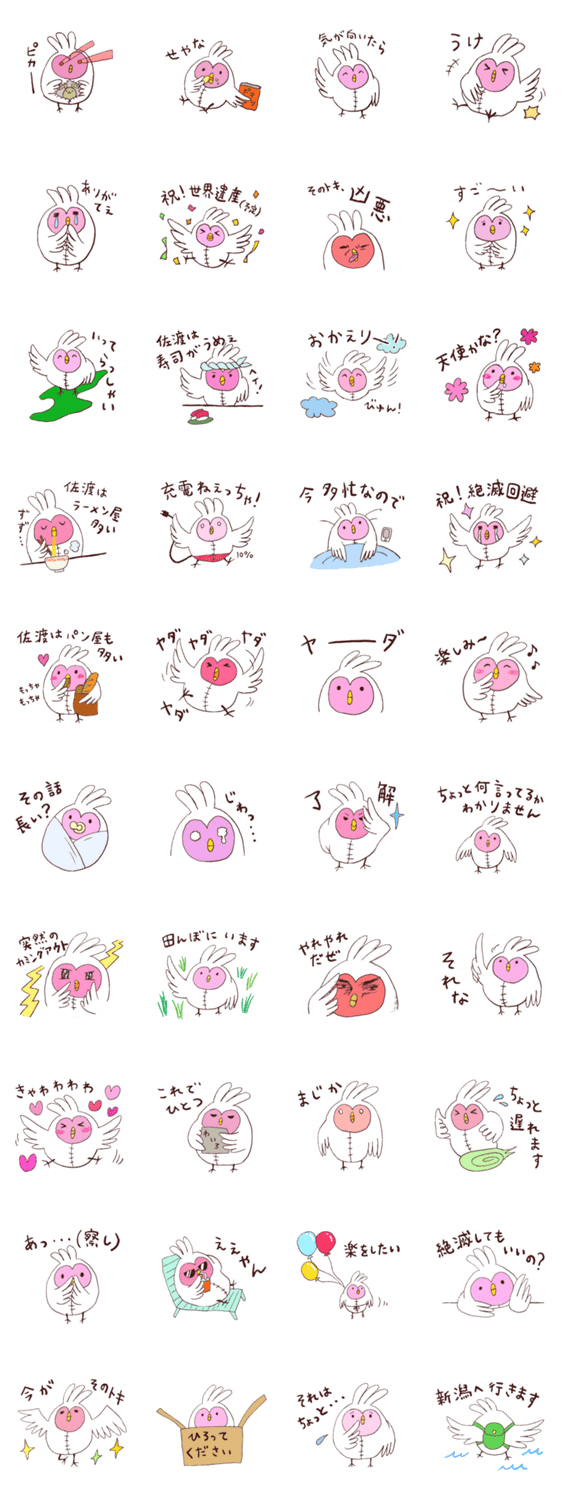 特に佐渡弁ではないゆる~いトキのスタンプです。 普段の会話にぽんぽんトキを飛ばしてください。