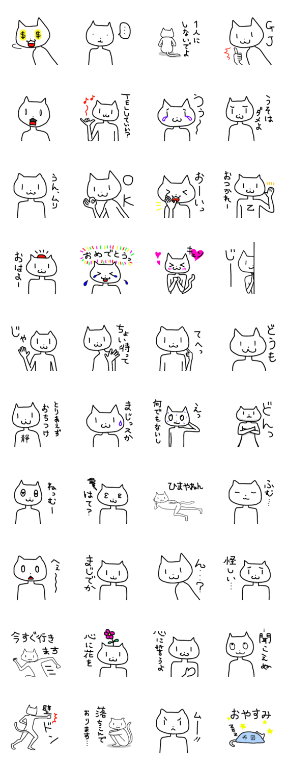 人間みたいなねこさんのスタンプです。