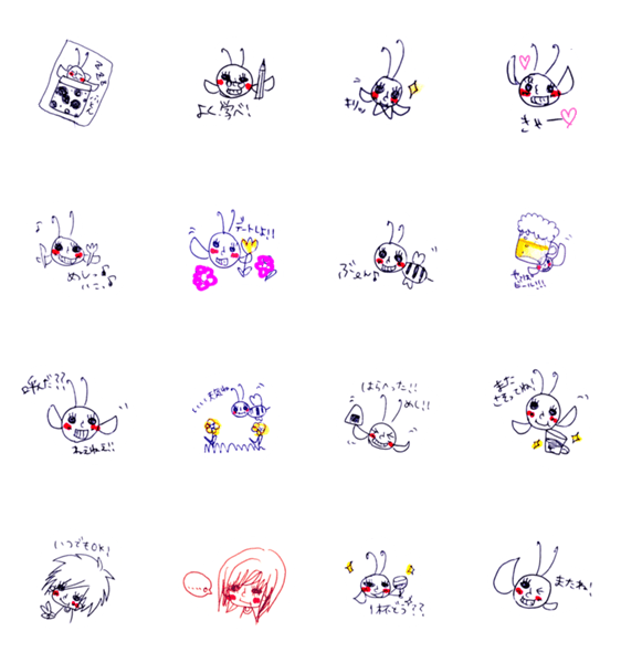 LINE Creators Studioでつくったスタンプです。不思議な虫のBOWO(ヴォウォ)と、蜂のぶんぶん。その仲間たちのスタンプです!
