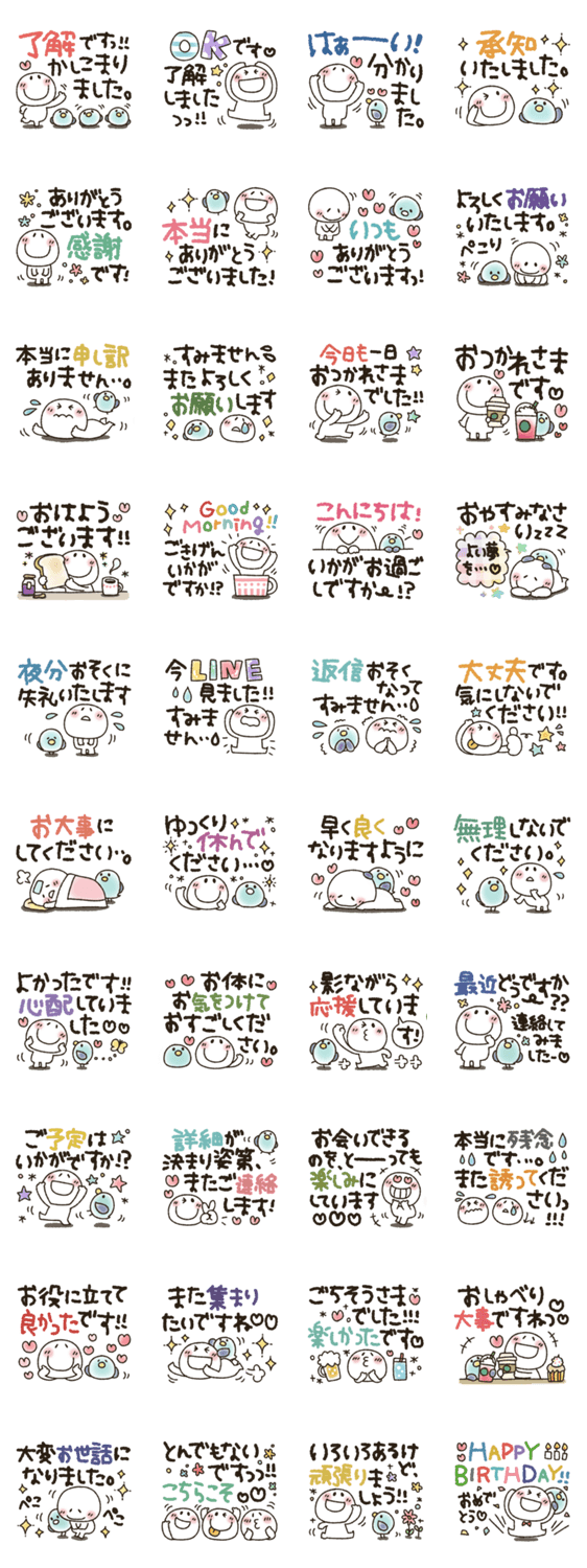 まるぴのスタンプ44作目です!気遣いの言葉、デカ文字、カラフル、基本のセットです。