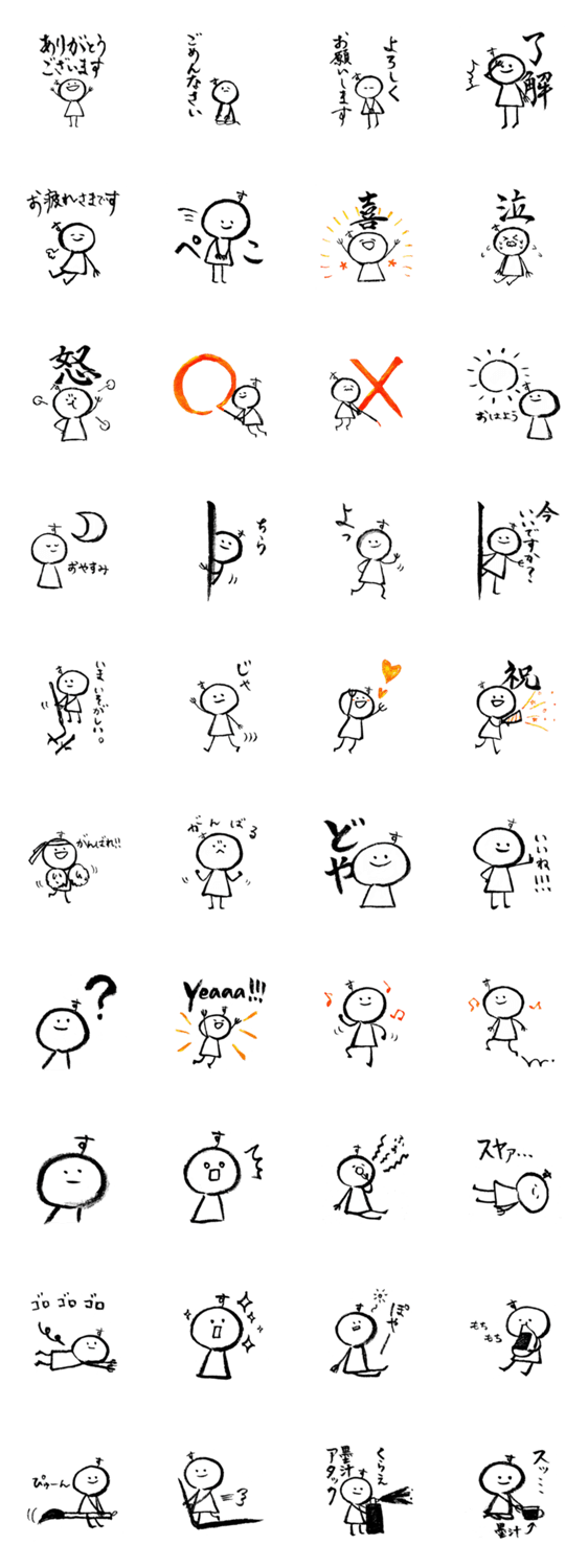 書道が好きな墨の子「もちずみ」のスタンプです。