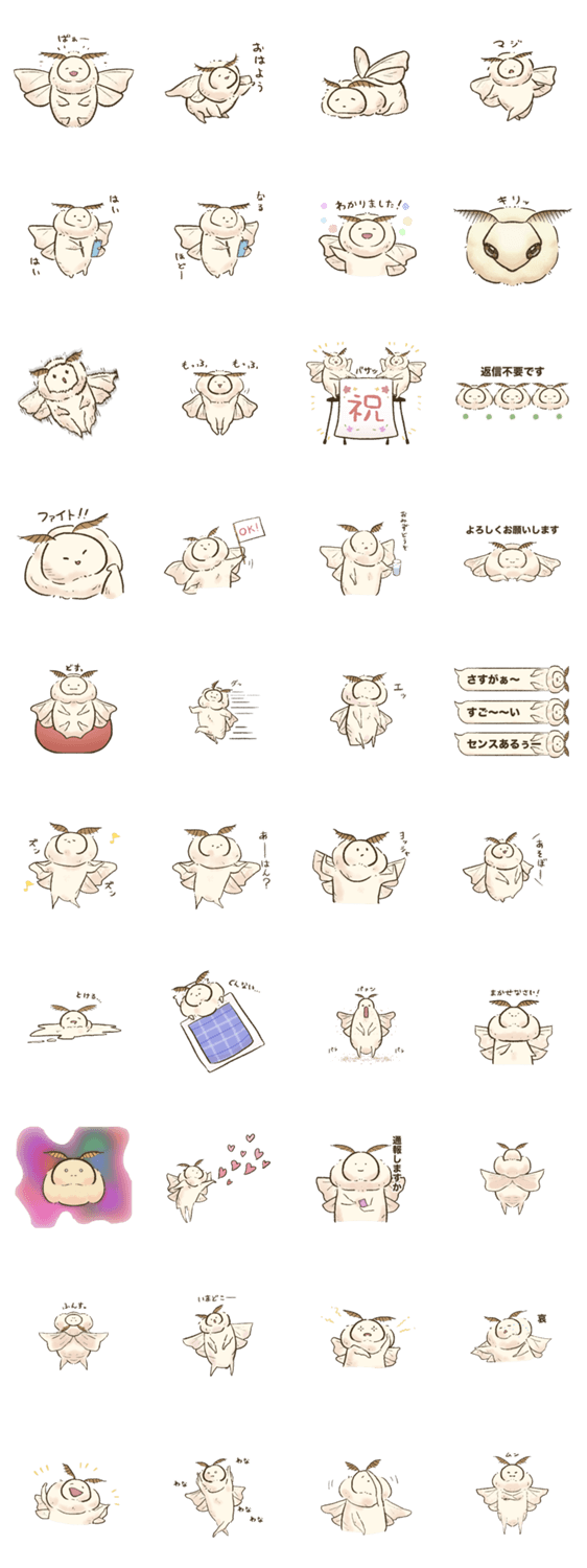 ほのぼのかわいい、カイコガ(蚕)のカイちゃんのスタンプです