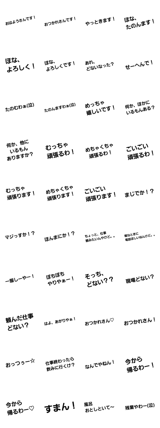 超よくつかう関西弁 ~仕事編~ とにかくシンプルに文字だけでよく仕事中に使う関西弁をスタンプにしました☆
