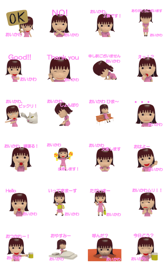 | スタンプ説明 | おいかわさん用の女の子スタンプを3Dで作ってみました。全国の及川さん、ぜひ使ってください! |