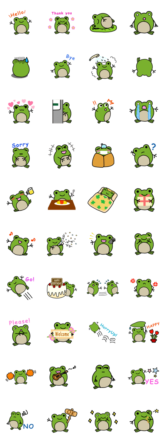 丸っこくて可愛いカエルのスタンプ。シンプルで使いやすいデザインです。