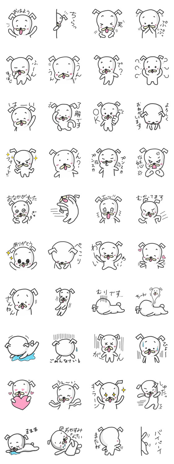 | スタンプ説明 | 犬が大好きな9才の女の子が考案したキャラクター犬『なぽちぽ』。日常で使えるスタンプです。 |